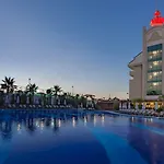 A privát strandterületet és ajándékboltot kínáló 5 csillagos Side Crown Palace Ultra All Inclusive hotel a Kumkoy körzetben található, 3 km-re a Side Halk Beach és csaknem 5 percnyi sétára a Mall of Side területétől. A Side városi hotel 6 km-re fekszik a Sidei Múzeum területétől, továbbá a helyszínen à la carte restaurant étteremmel és 2 szabadtéri medencével várja vendégeit.